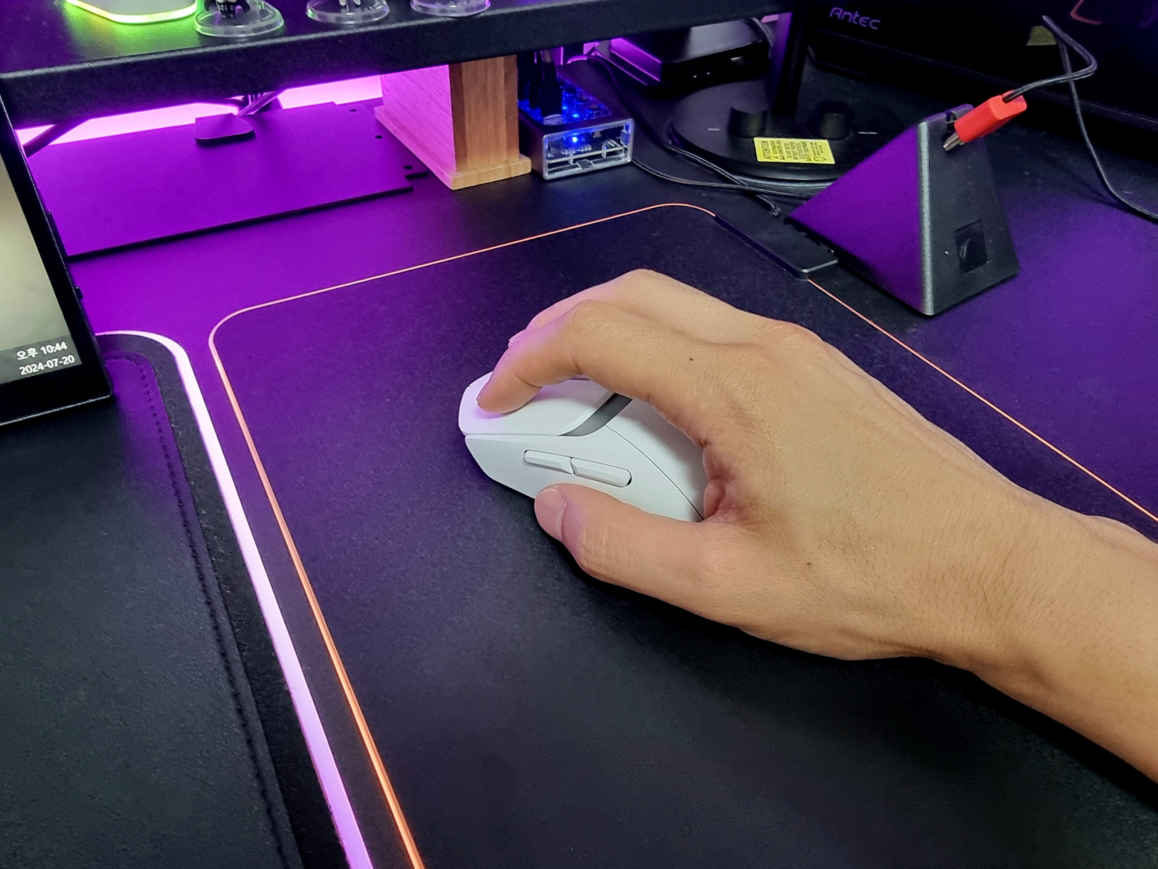 AA건전지를 포함하여 약 86g 정도로 적당한 무게감과 부드러운 무빙이 가능해 FPS 게임 시 정확한 에이밍이 가능했고 최근 DPI를 1200으로 롤을 자주 하다 400 DPI로 바꿔 발로란트를 해봤지만 금방 적응하여 게임할 수 있었어요.