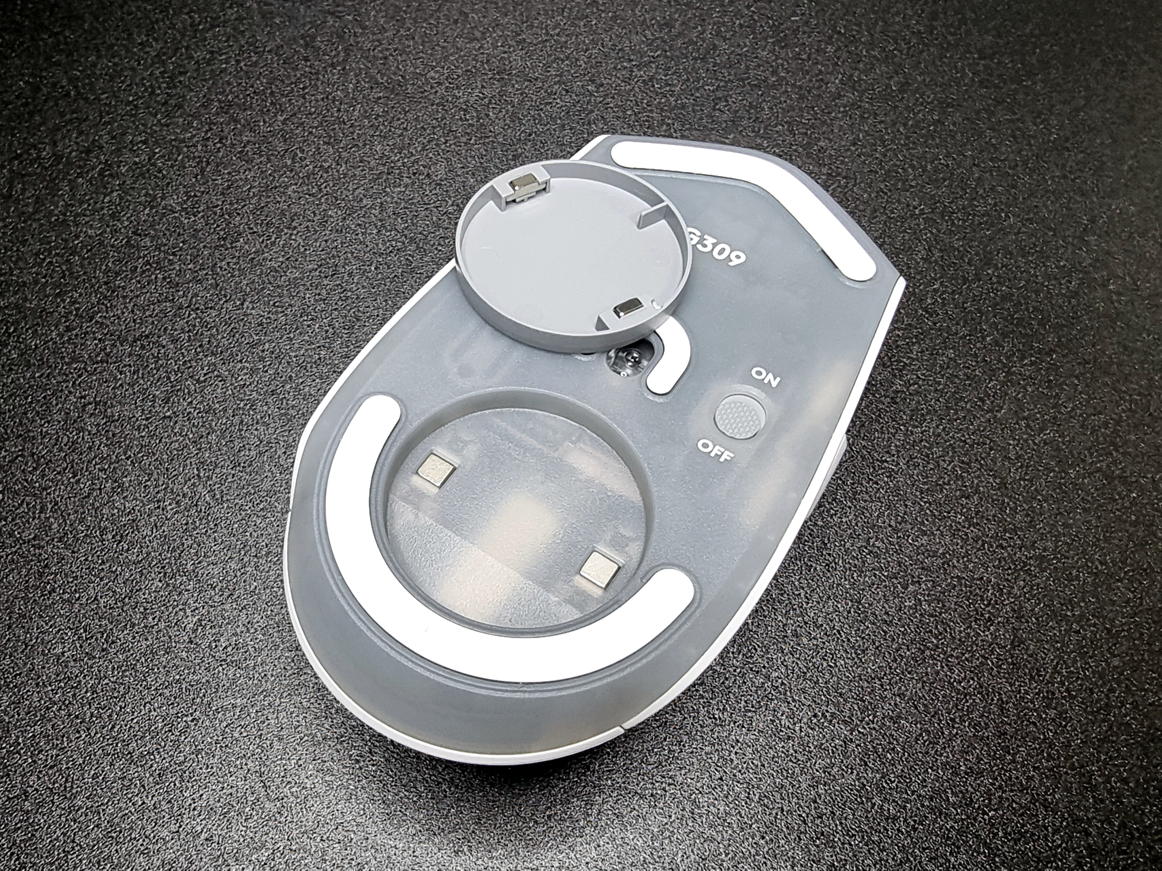 쉘 부분은 로지텍의 로고가 각인되어 로지텍만의 아이덴티티를 잘 나타내고 있고 쉘 부분을 가벼운 힘으로 아래로 밀면 커버가 탈착 가능해 AA 건전지 1개를 넣어 사용할 수 있어요.