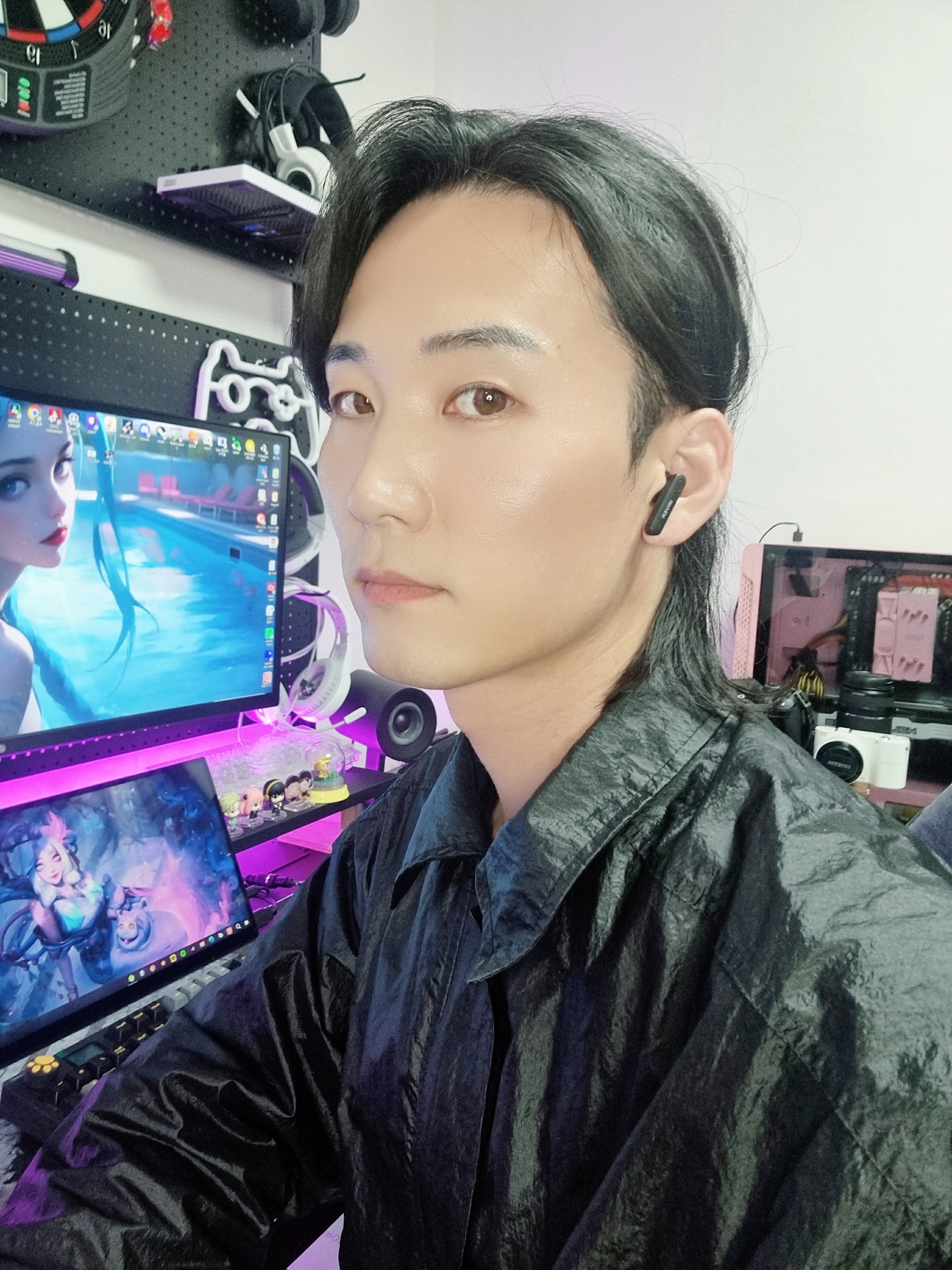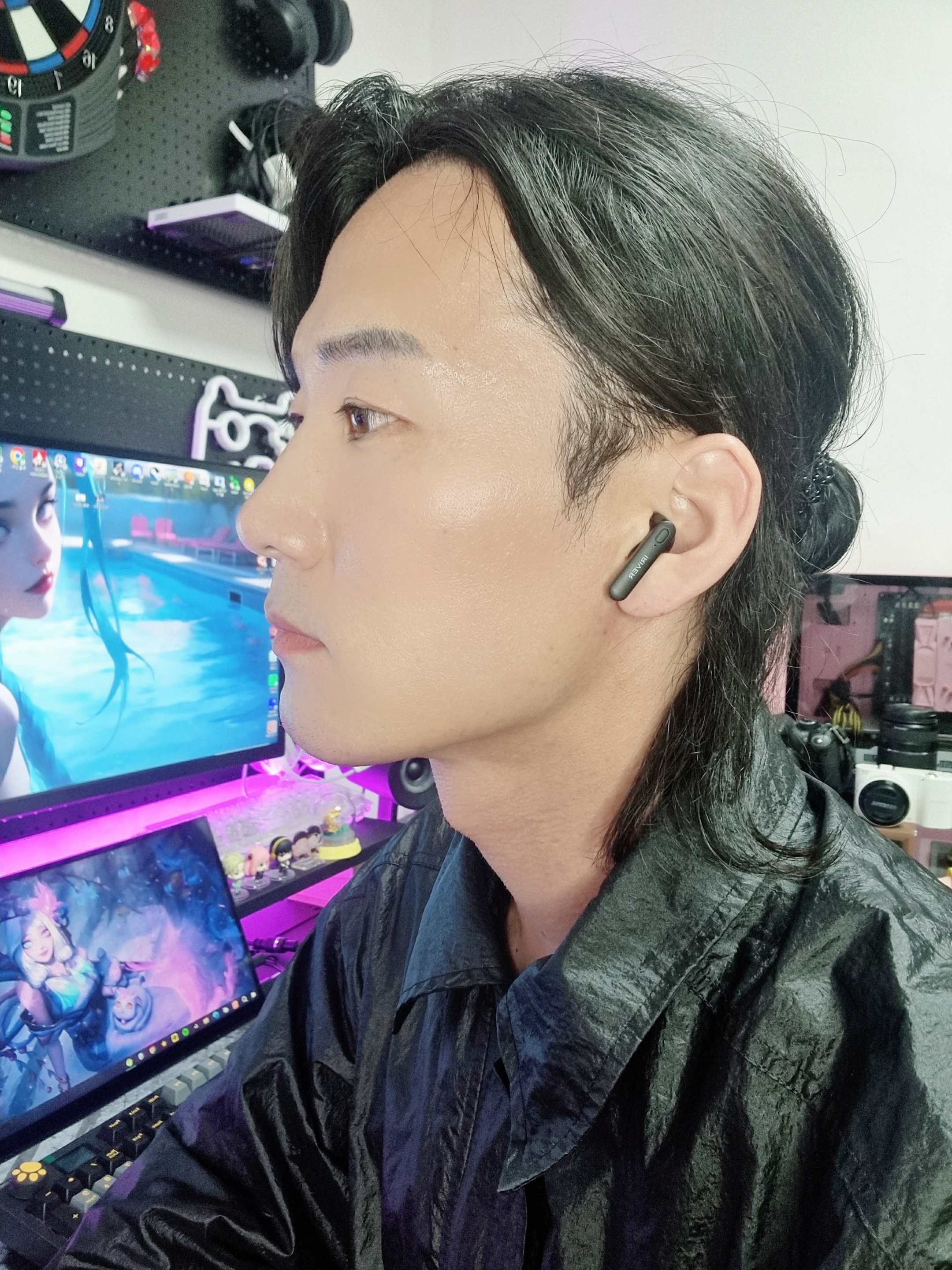 감상을 위해 직접 착용해보니 정말 가벼운 무게와 인체공학적 디자인으로 편하게 착용할 수 있었습니다. 세미 오픈형 이어폰 타입으로 귀에 가볍게 꽂아 사용하기 때문에 귀가 답답하거나 불편하지 않았습니다.