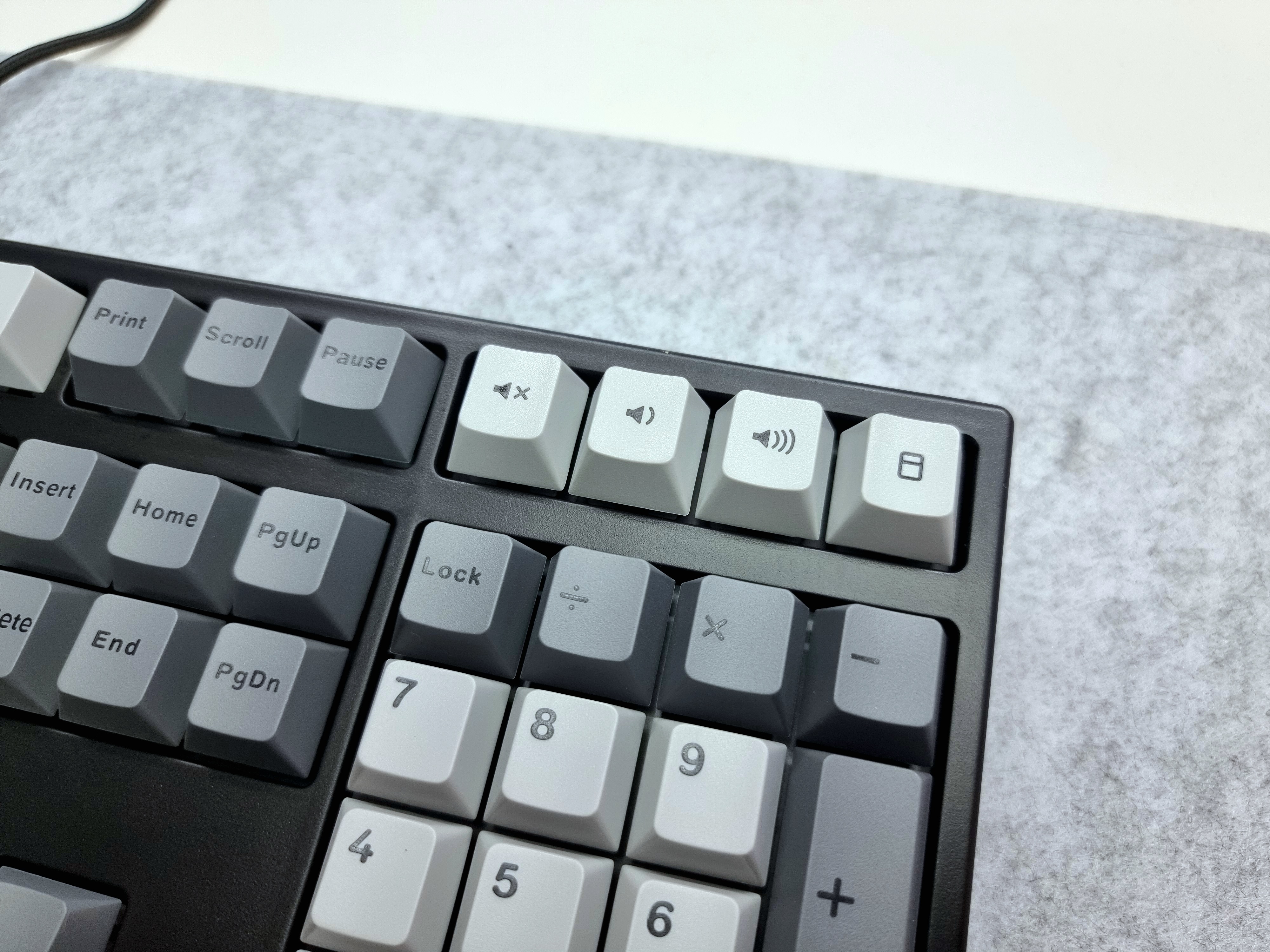 GK707SE는 일반적인 Num Lock, Caps Lock, Win Lock LED 위치와 달리, ESC 키 옆에 위치하여 더 직관적으로 사용이 가능합니다. 또한, 우측 상단에는 볼륨 조절 전용 키가 배치되어 있어, 일반적인 ‘FN + 키’ 조합을 사용할 필요 없이 쉽게 볼륨을 조절할 수 있습니다. 이 부분이 매우 편리했고, 직관적인 사용성을 높여주는 요소 중 하나였습니다.