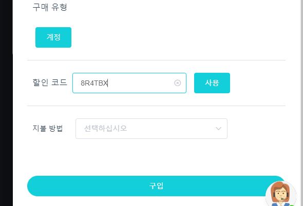 원하는 개월 및 금액을 클릭하고 아래 10% 할인코드를 입력합니다.
