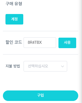 - 할인코드 입력 → 8R4TBX 입력 후 결제 금액 확인