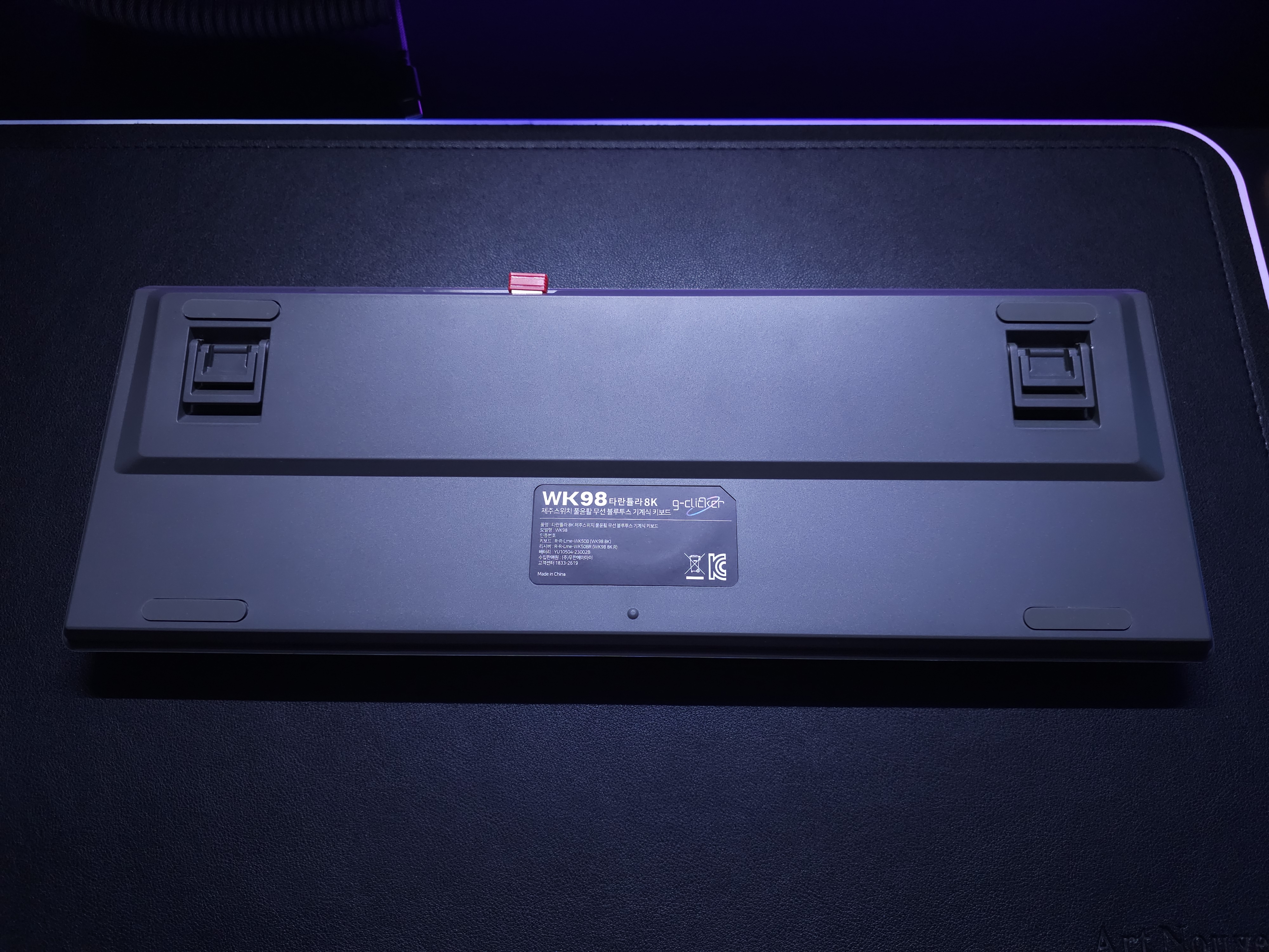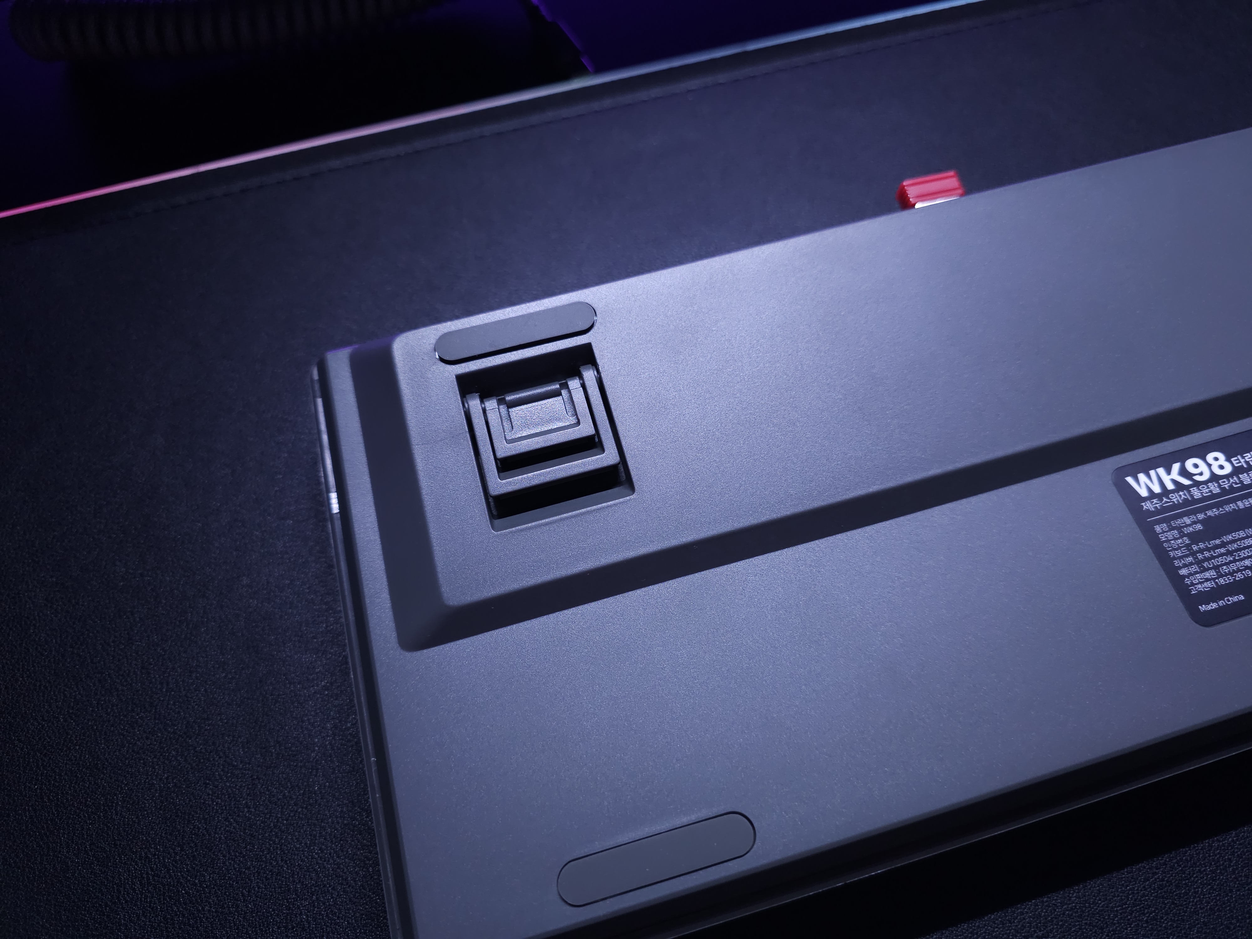 바닥면에는 미끄럼 방지 고무패드와 2단 높이 조절 다리가 있어서 타건 시 흔들림 없이 안정적이에요.