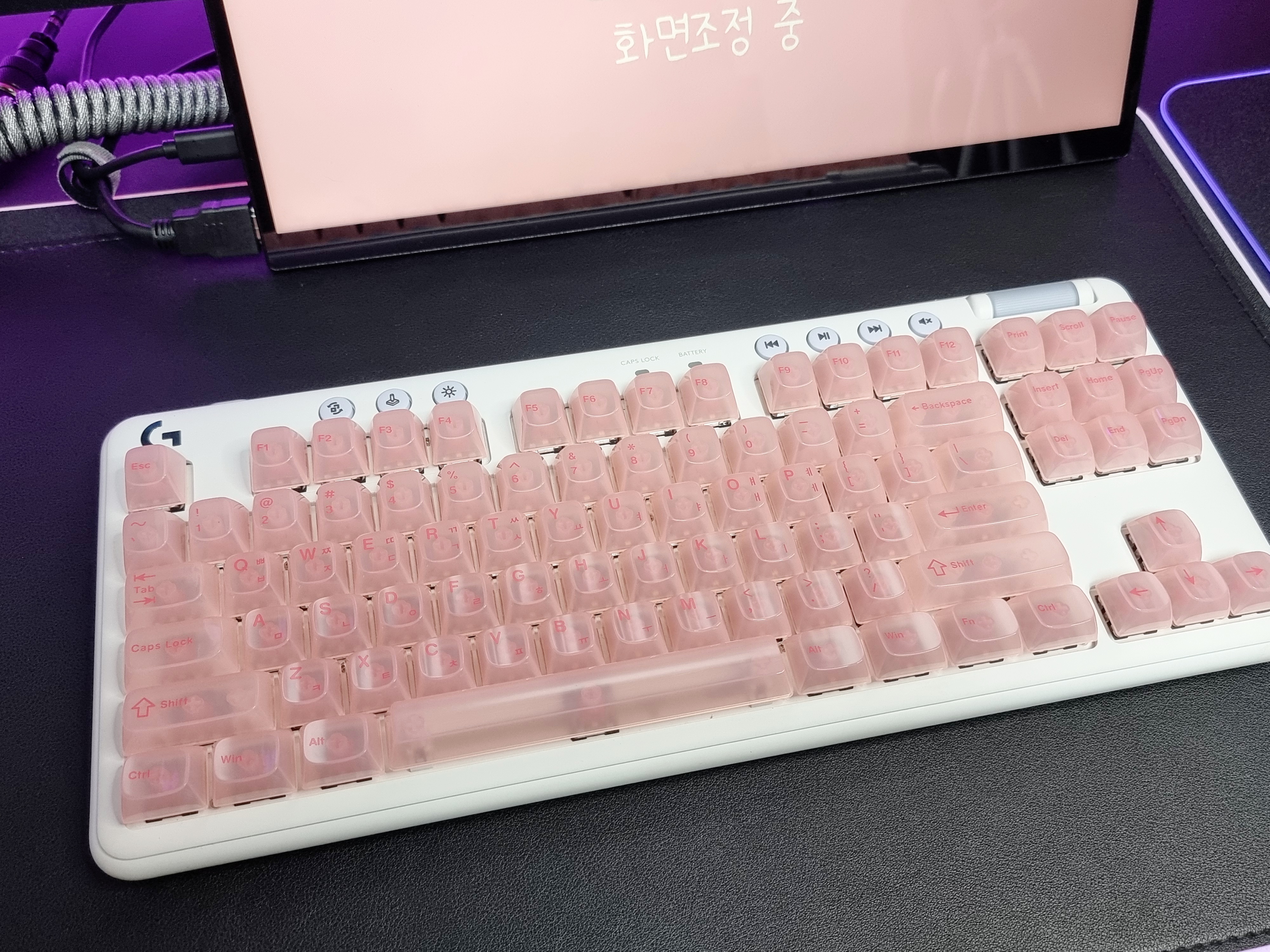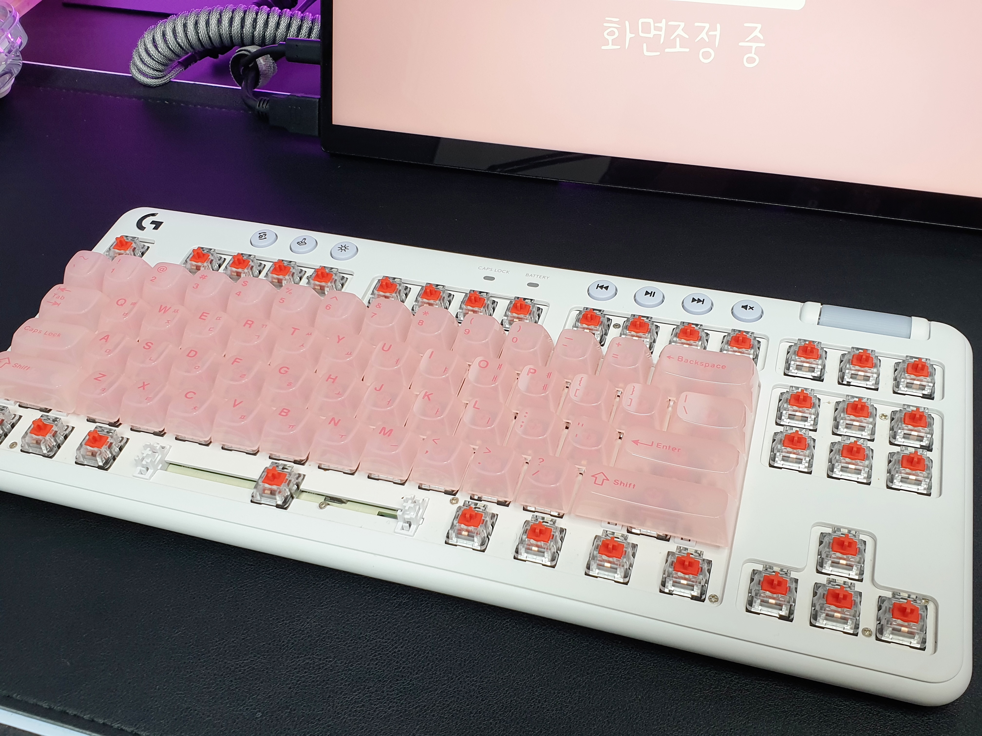 키캡을 교체할 키보드는 키보드는 로지텍 G715 화이트 적축으로 베이비 핑크 색상과 잘 어울릴 것 같습니다.