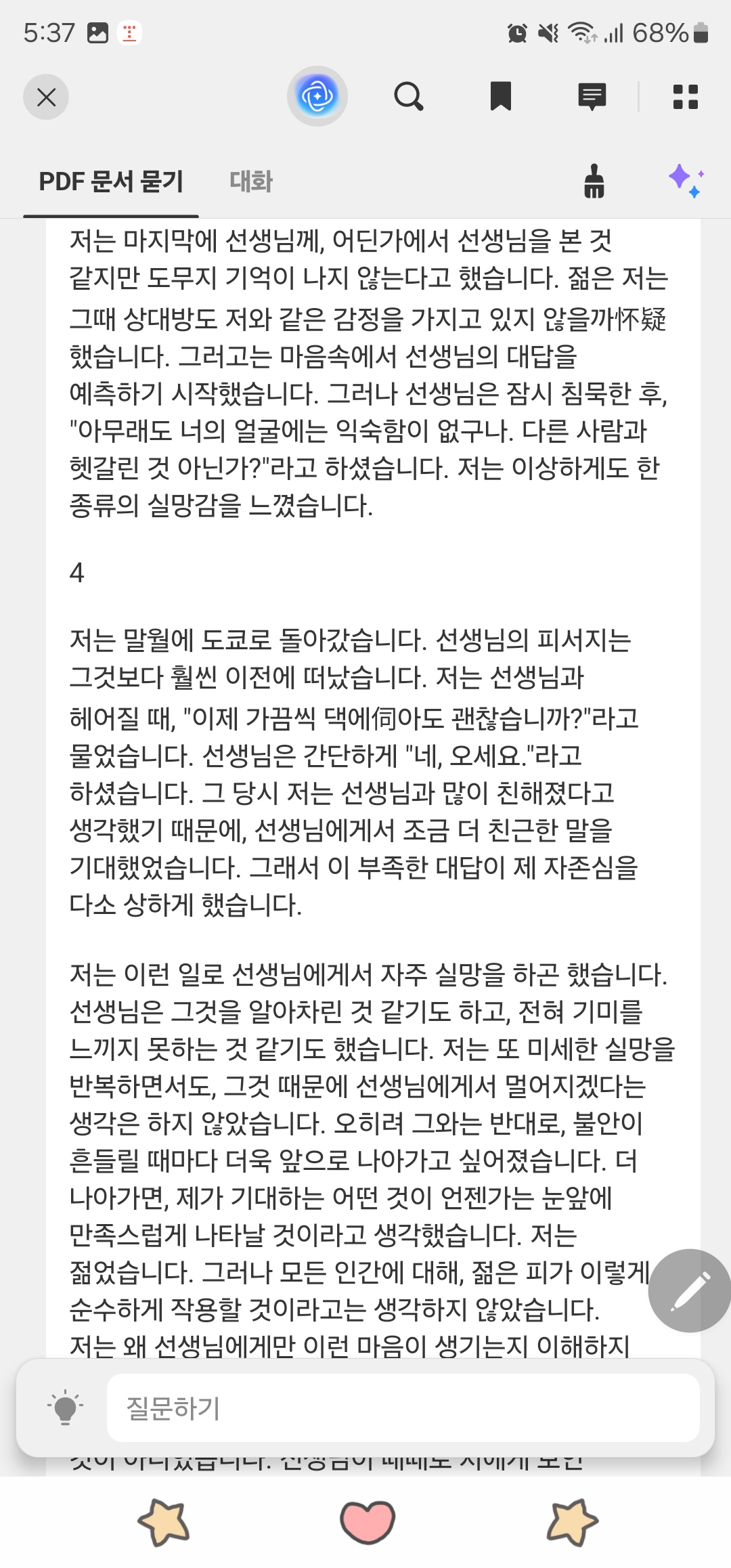긴 보고서는 AI 요약 기능으로 핵심만 추출해 회의 자료로 활용했습니다. 또한 외국어 PDF는 번역 기능을 사용해 이해도를 높였습니다.